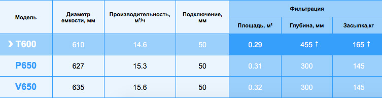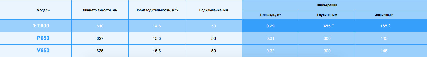 Сравнительная таблица уровня фильтрации T600 с ближайшими аналогами P и V.