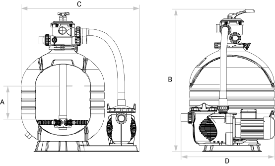 | Модель | Фильтр | Насос | A, мм | B, мм | C, мм | D, мм |